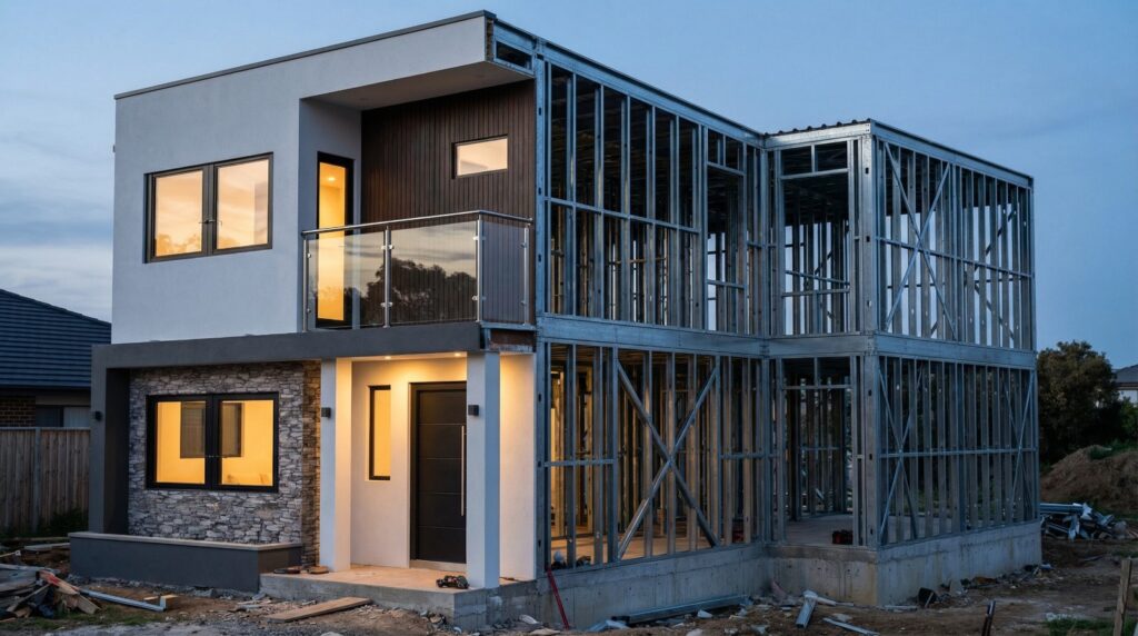 “El Steel Frame es un sistema constructivo basado en perfiles de acero galvanizado. Ligero, preciso y altamente resistente. Pero lo que lo hace especial… es cómo responde ante los movimientos de la tierra.”